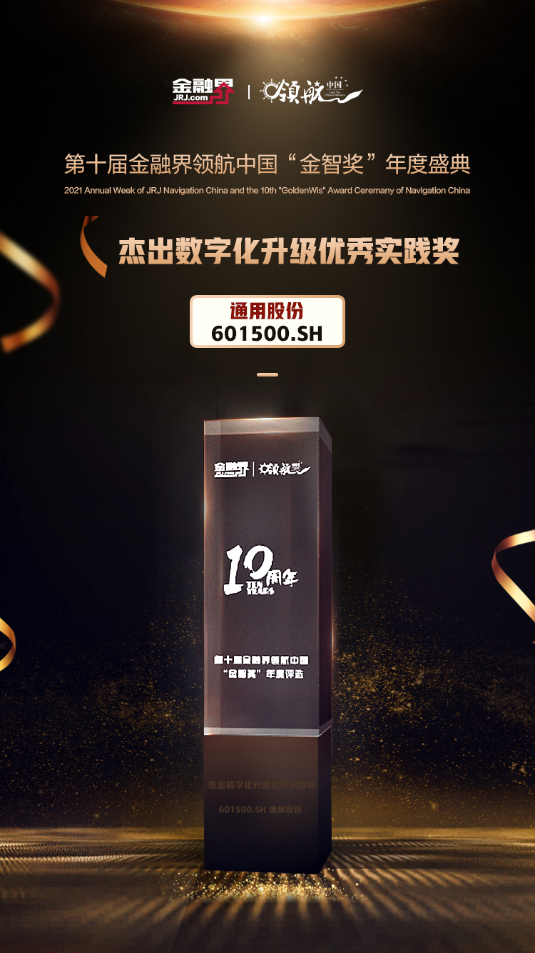 通用股份榮獲2021領(lǐng)航中國杰出數(shù)字化升級優(yōu)秀實踐獎 12月24日,在由金融界舉辦的2021第十屆領(lǐng)航中國金智獎年度盛典頒獎典禮上,通用股