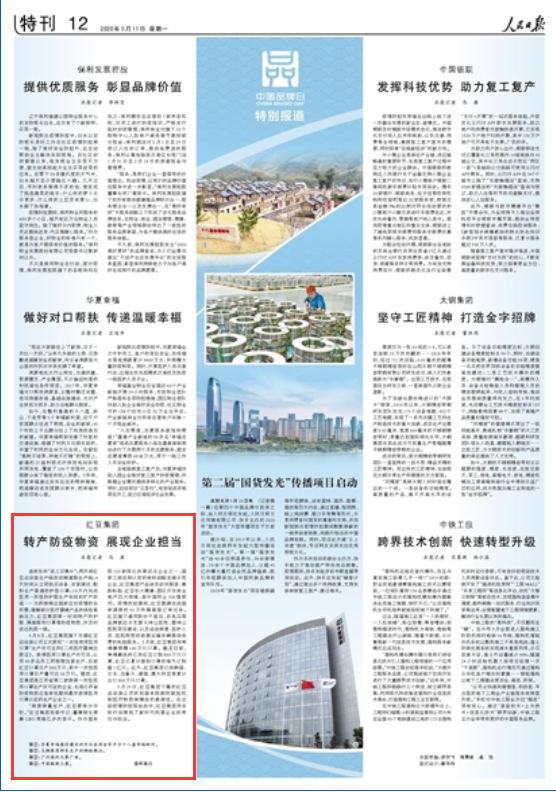 《人民日報》2020年5月11日12版 版面截圖 連夜發(fā)布返工召集令;兩天將紅豆運動裝生產(chǎn)線改成隔離服生產(chǎn)線;4天時間從立項到買設(shè)備、安