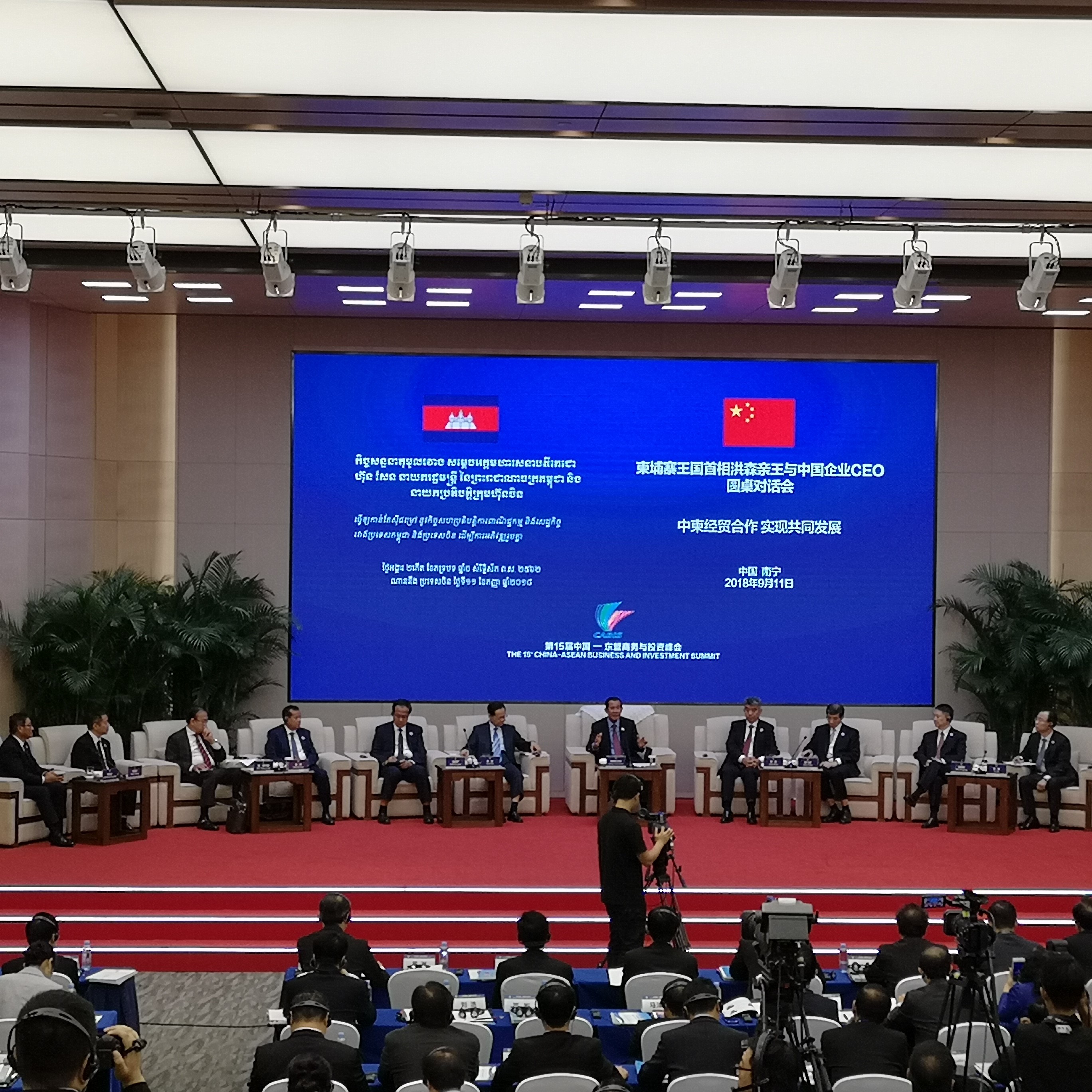 柬埔寨發(fā)展理事會秘書長宋金達(dá)主持會議,廣西壯族自治區(qū)人民政府主席陳武,中國-東盟商務(wù)與投資峰會組委會副主任、中國貿(mào)促會副會長陳洲等領(lǐng)導(dǎo)出席會議并致辭。西港特區(qū)公司董事長陳堅剛等參會。