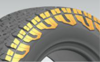 增強(qiáng)型輪胎結(jié)構(gòu),多層胎體骨架材料共同作用通過(guò)計(jì)算機(jī)仿真優(yōu)化,提升輪胎強(qiáng)度及通過(guò)性能;