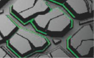 花紋塊底部邊緣增加花紋塊增強(qiáng)結(jié)構(gòu),增強(qiáng)了花紋塊的強(qiáng)度,提供更加有力的抓地性能。
